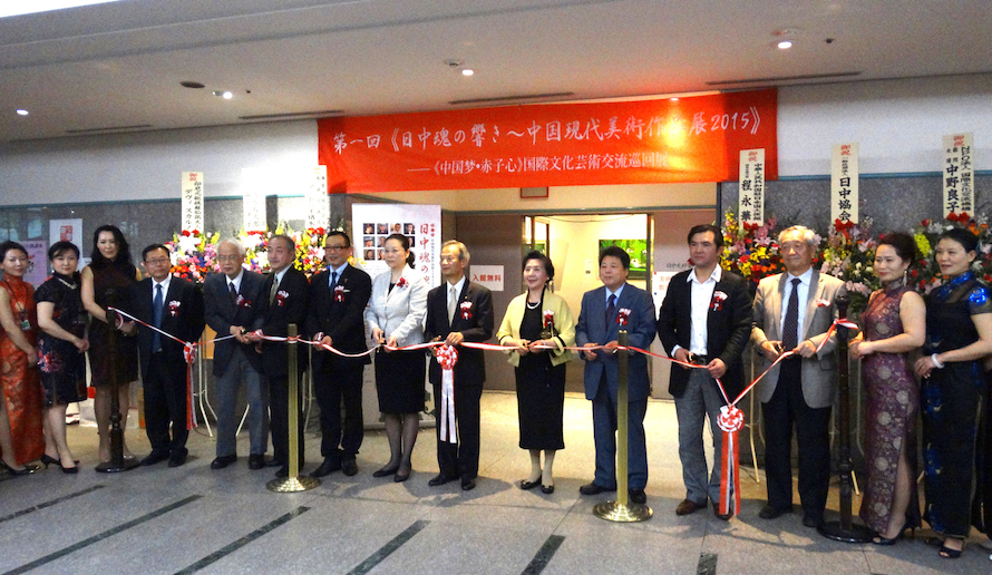 由日本内阁府认证NPO法人国际文化交流机构、社团法人日中交流协会共同邀请中国社会经济文化交流协会主办的首届《日中魂之响中国现代美术作品展2015》一“中国梦赤子心—2015首届日中文化艺术交流活动”于2015421日至424日在日本东京“日中友好会馆美术馆”举办。中国社会经济文化交流协会名誉会长、著名舞蹈家、著名画家赵青领衔范舟(海翁)、米金铭、林跃、徐鸣、邱白、周颖超、李晓玲、王继民、赵琼谢克坦茨、孔繁钜等著名书画家赴日展出40余幅作品。日本前首相鸠山由纪夫、中华人民共和国驻日本国特命全权大使程永华、社团法人中日协会会长兼议院议员野田毅、理事长白西绅一郎、著名演员栗原小卷、中野良子等多位具有影响力的高层官员及各界名流出席了画展开幕式。中国社会经济文化交流协会秘书长刘彤表示,“书画艺术是一个国家文化的象征,可以超越语言的隔阂,传递文化正能量,增进中日两国的友好和理解。”